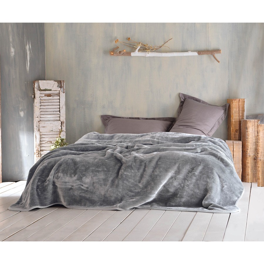 Κουβέρτα Υπέρδιπλη (220x240) Βελουτέ Rythmos Velour Γκρι