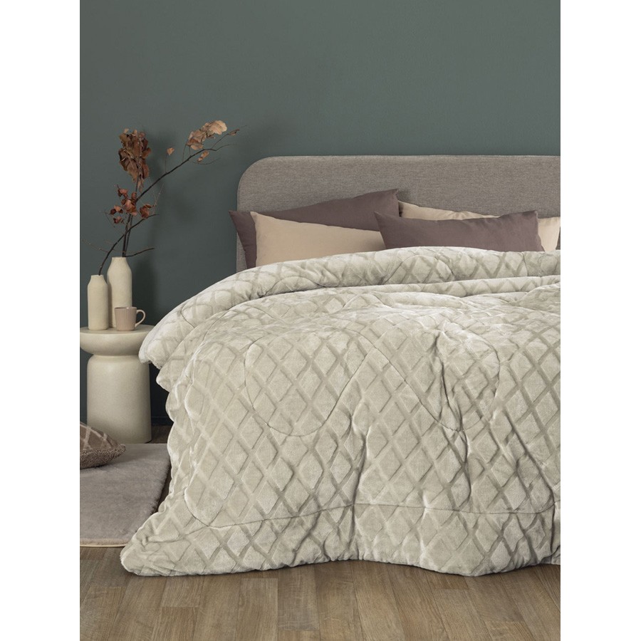 Κουβερτοπάπλωμα flannel με sherpa Nadine. Εξωτερικά είναι κατασκευασμένο από απαλό flannel ύφασμα 100% polyester και εσωτερικά έχει γουνάκι sherpa. Ιδανικό για τις κρύες φθινοπωρινές και χειμωνιάτικες νύχτες. Το χαρακτηριστικό του πολυεστερικού υφάσματός του είναι η αντοχή, μιας και μπορεί να διατηρήσει αναλλοίωτο το σχήμα και το χρώμα του για πάρα πολλά χρόνια και μετά από πολλές πλύσεις. Δεν ζαρώνει, ούτε και χρειάζεται ιδιαίτερη φροντίδα. Επιπλέον, ανήκει στα λευκά είδη που δεν προσελκύουν το σκόρο όταν αποθηκεύονται για τους καλοκαιρινούς μήνες. Ιδανικό για να σας προσφέρει ζεστασιά και άνεση στον ύπνο.