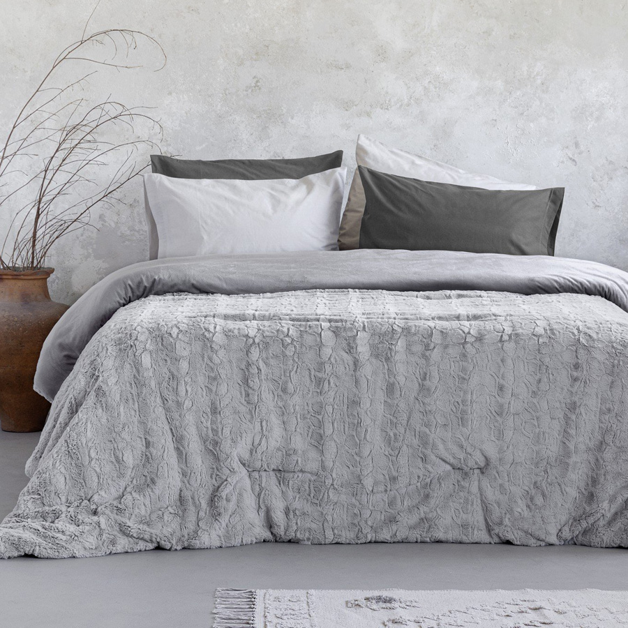 To Κουβέρτoπάπλωμα Velure έχει ανάγλυφη ύφανση που θυμίζει γούνα, για ακόμα πιο χουχουλιάρικη αίσθηση. Στην εσωτερική του πλευρά έχει απαλή, λεία velour υφή για μεγαλύτερη άνεση στον ύπνο. Το σχέδιό του ταιριάζει εύκολα σε μοντέρνο αλλά και κλασικό στιλ διακόσμησης, φέρνοντας τη ζεστή θαλπωρή που επιθυμούμε να έχει το σπίτι μας όταν κρυώνει ο καιρός. Είναι ιδανικό για να σας αγκαλιάσει απαλά τα χειμωνιάτικα βράδια ενώ χαλαρώνετε ή απολαμβάνετε τον ύπνο σας.