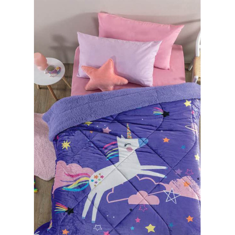 Παιδικό κουβερτοπάπλωμα με σχέδιο μονόκερος. Προσφέρει ζεστασιά και άνεση. Είναι απαλό και ανθεκτικό στην καθημερινή χρήση.