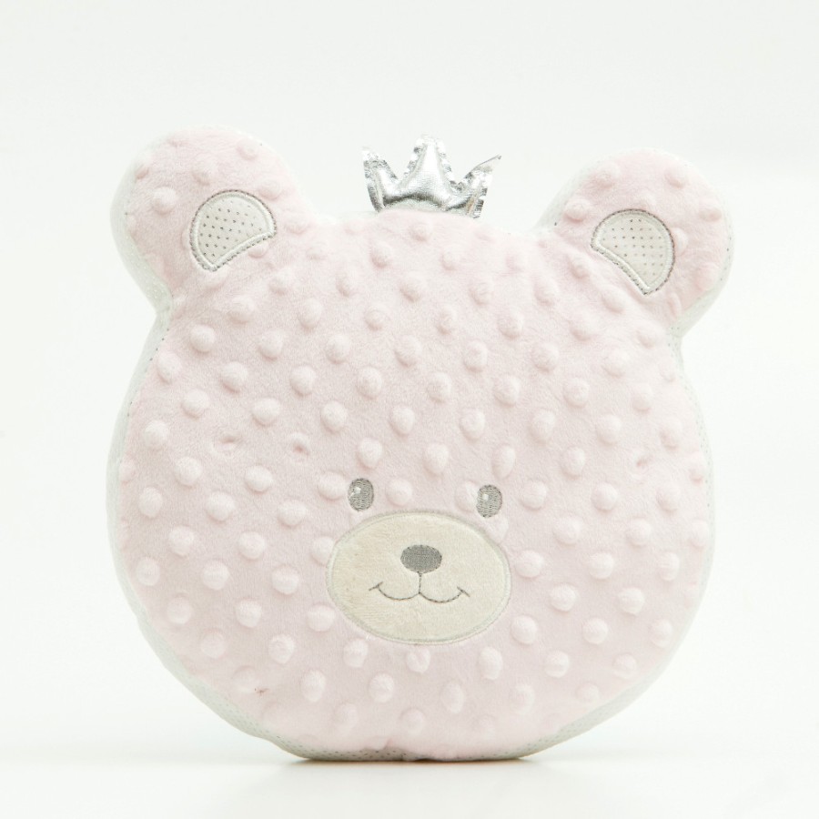 Διακοσμητικό μαξιλαράκι φιγούρας από ύφασμα micromink, μονόχρωμο, ανάγλυφο, με φούσκες και κέντημα, με σχέδιο αρκουδάκι.