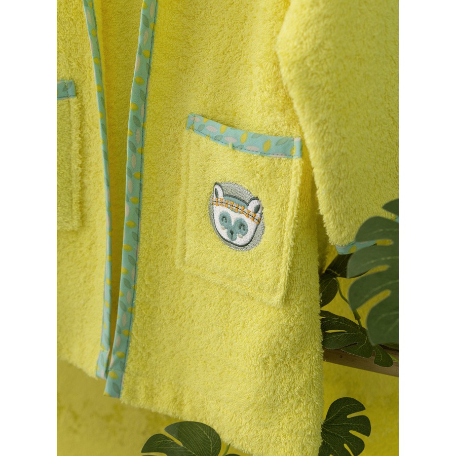 Το βαμβακερό μπουρνούζι Akunga θα κάνει την ώρα του μπάνιου ακόμα πιο διασκεδαστική γιατί το μωράκι σας θα έχει για παρέα του χαριτωμένους λεμούριους και λίγη από τη μαγεία της ζούγκλας που βρίσκονται στο κεντητό του σχέδιο. Έχει φωτεινές κίτρινες και πράσινες αποχρώσεις και είναι διακοσμημένο περιμετρικά με βαμβακερή φάσα που έχει τυπωτό σχέδιο.