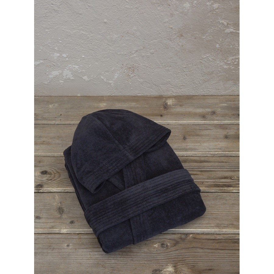 Μπουρνούζι (XXLarge) Βελουτέ με Κουκούλα Nima Zen Total Black (Μαύρο)