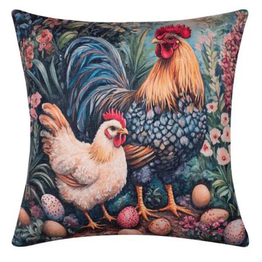 Πασχαλινή Μαξιλαροθήκη Φιγούρας (45x45) Newhome Easter 2025-2 Κοκόρια με Αυγά