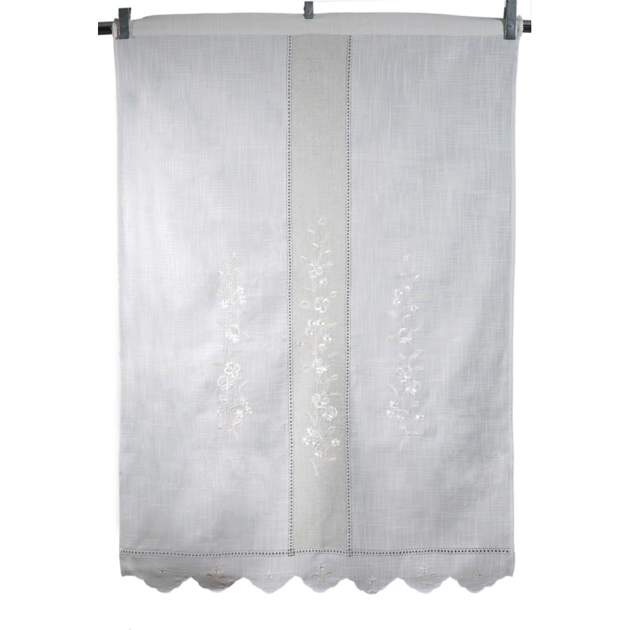 Κουρτίνα λινή με κέντημα, παραδοασιακή-νησιώτικη σε χρώμα εκρού/άμμου.