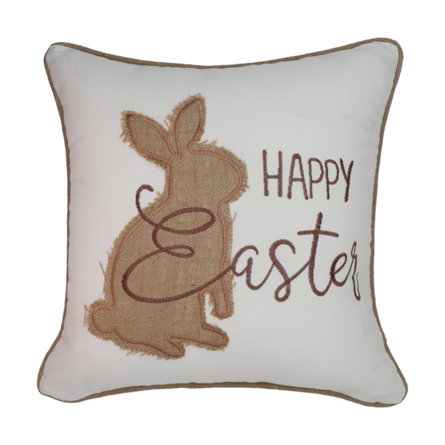 Πασχαλινή Διακοσμητική Μαξιλαροθήκη (45x45) Λινή Απλικέ Newhome 0743 Κουνελάκι Happy Easter