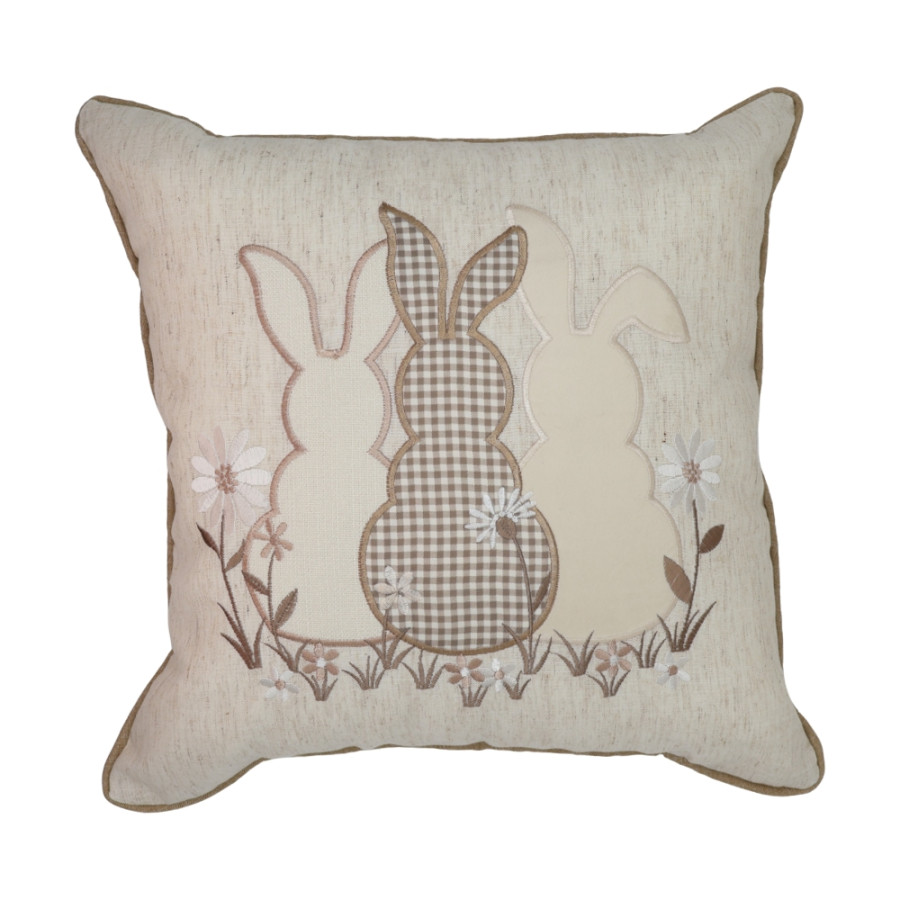Πασχαλινή Διακοσμητική Μαξιλαροθήκη (45x45) Λινή Απλικέ Newhome 1860 Κουνελάκι Καρώ