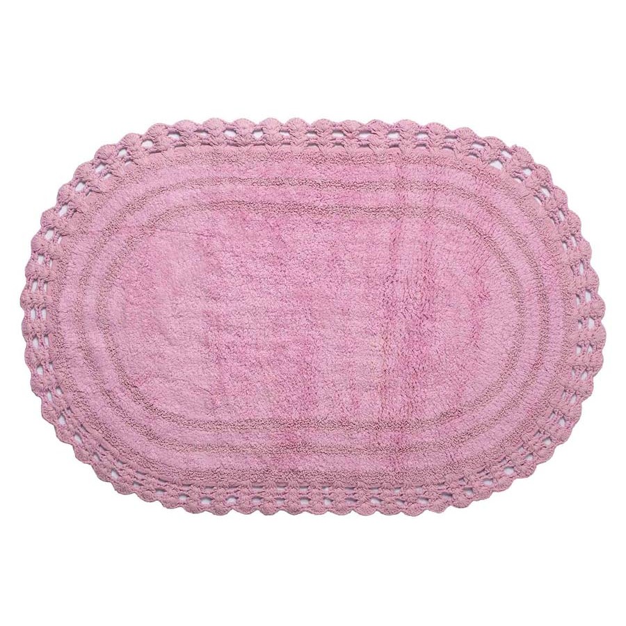 Πατάκι μπάνιου σε οβάλ σχήμα με τελείωμα δαντέλα.