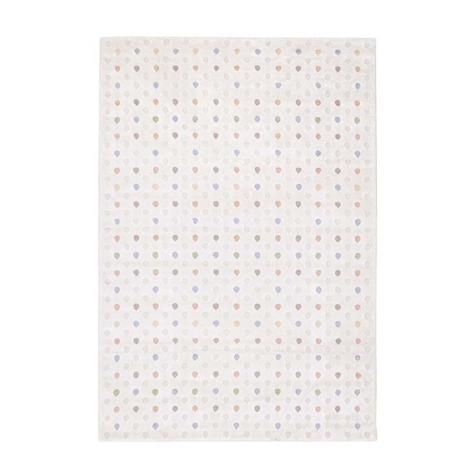 Χαλί σε εκρού χρώμα, με πολύχρωμη παστέλ ανάγλυφη παράσταση με πουά. Όλα τα χαλιά είναι υποαλλεργικά και κατάλληλα για πλύσιμο.