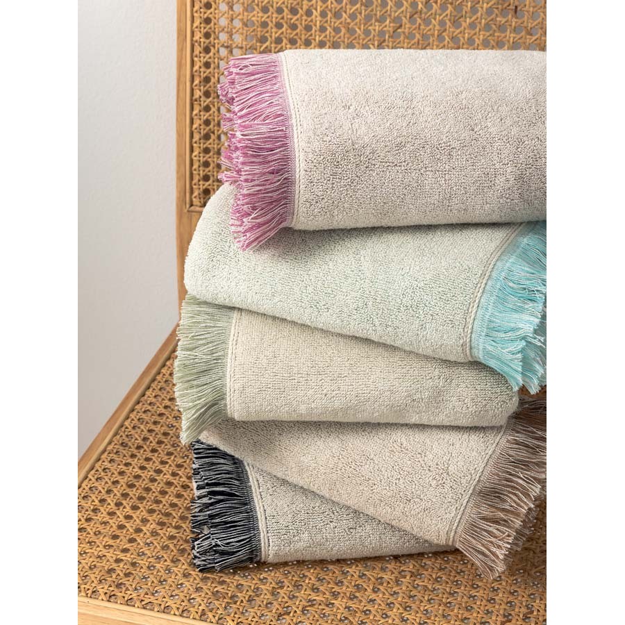 Αφράτες πετσέτες για καθημερινή χρήση, μονόχρωμες σε natural απόχρωση, με κρόσσια που δίνουν χρώμα.