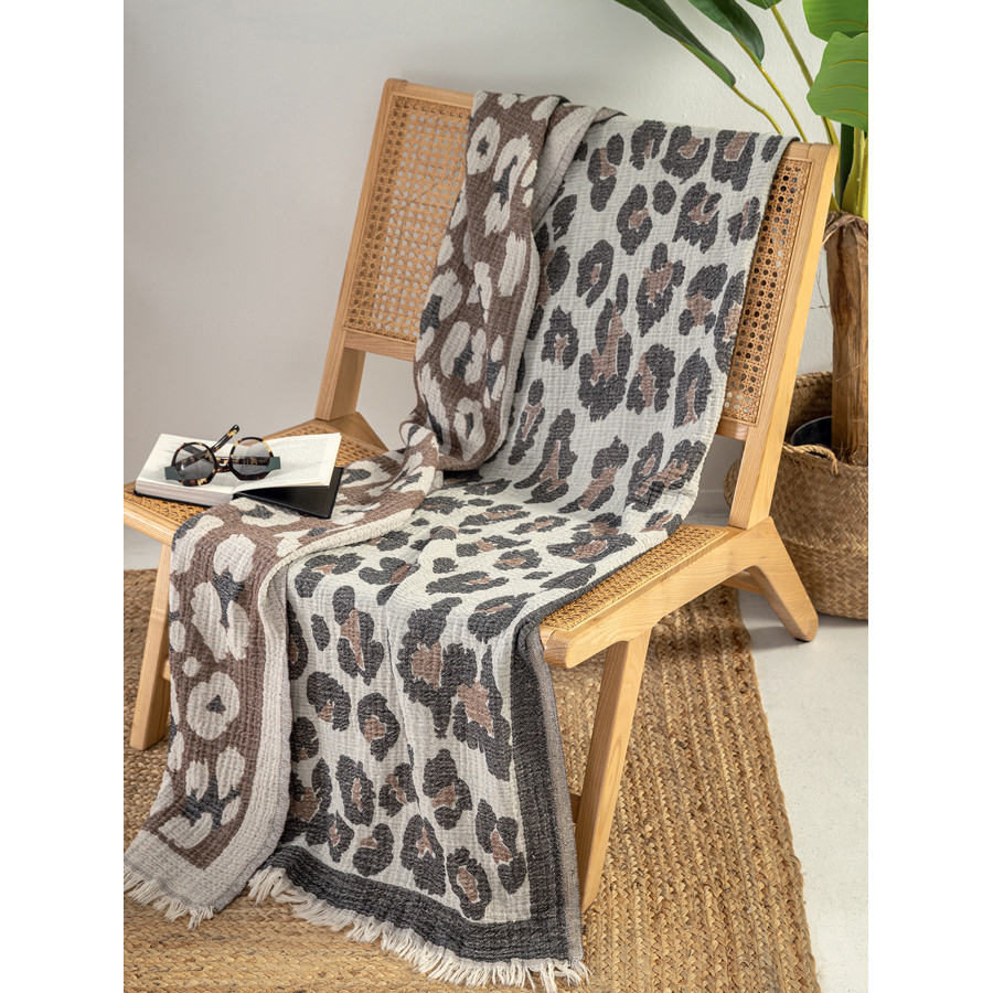 Πετσέτα-παρεό θαλάσσης Διπλής Όψης Muslin, Animal Print, με κρόσσια