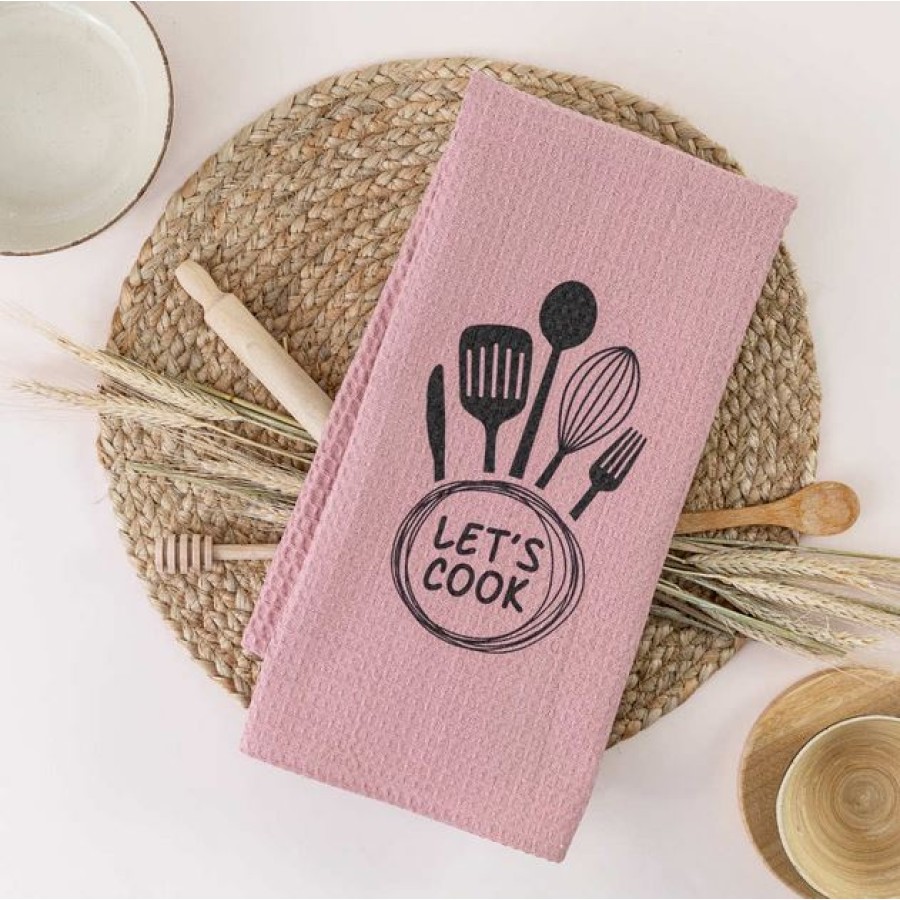 Ποτηρόπανο Κουζίνας (50x70) Βαμβακερό Βάφλα Borea Let's Cook Ροζέ
