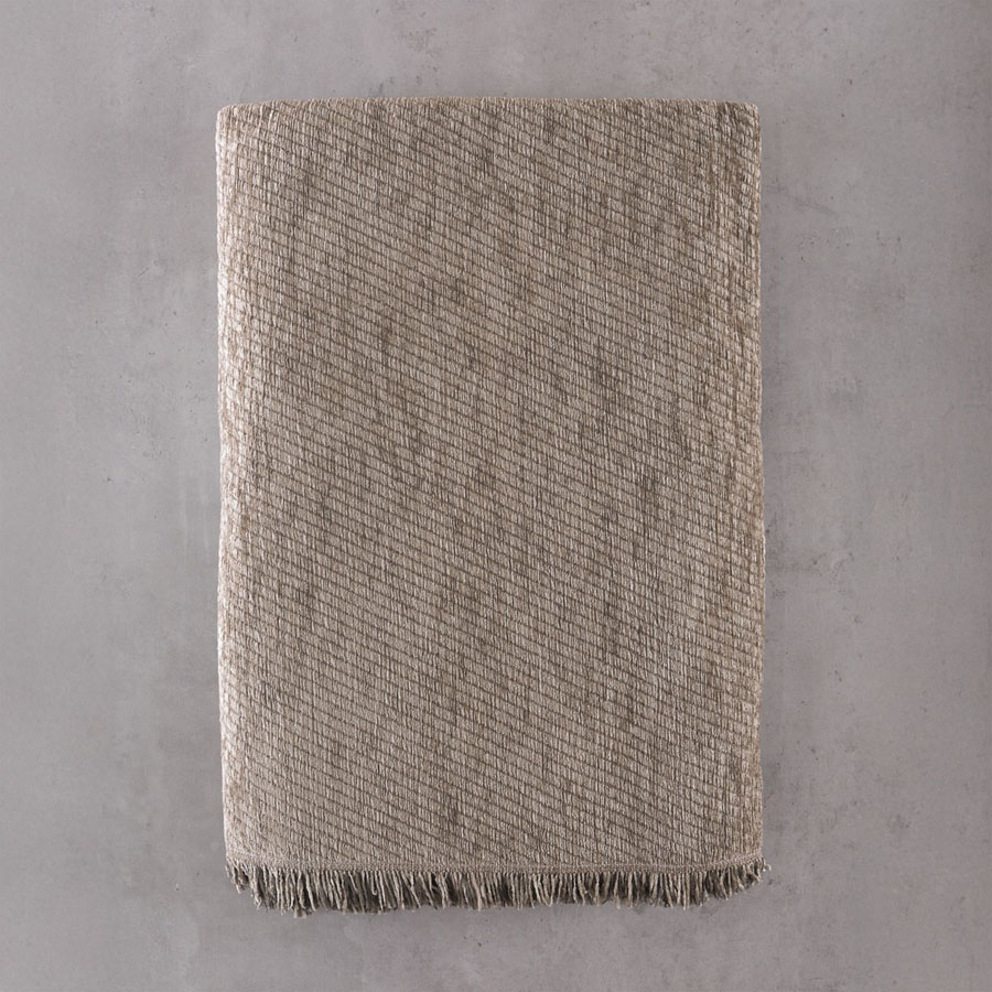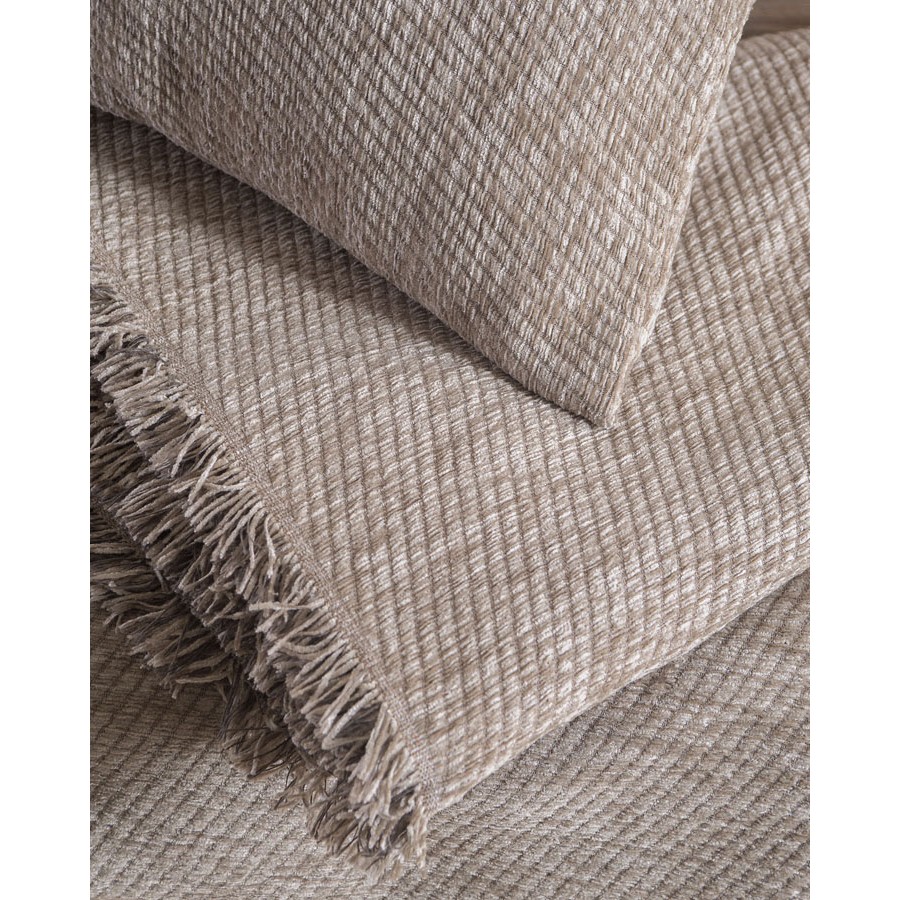 Ποιοτικό σενίλ ριχτάρι, μονόχρωμο με διακριτική πλέξη με μικρό ρόμβο.