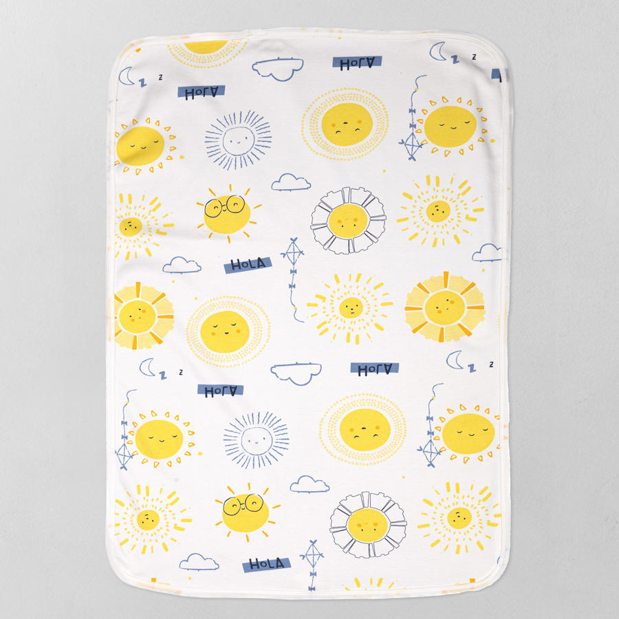 To βαμβακερό αδιάβροχο σελτεδάκι Tiny έχει ένα πανέμορφο σχέδιο μεκίτρινους ήλιους και συνεφάκια, που δημιουργούν μια χαρούμενη και αισιόδοξη εικόνα. Η μαλακή του υφή προσφέρει μια αίσθηση απαλότητας και άνεσης στο μωρό. Έχει πρακτικό μέγεθος 55x75, καθιστώντας το ιδανικό για το καρότσι, την κούνια ή την αλλαξιέρα, αλλά και απαραίτητο τόσο στο σπίτι όσο και σε επισκέψεις ή και ταξίδια.