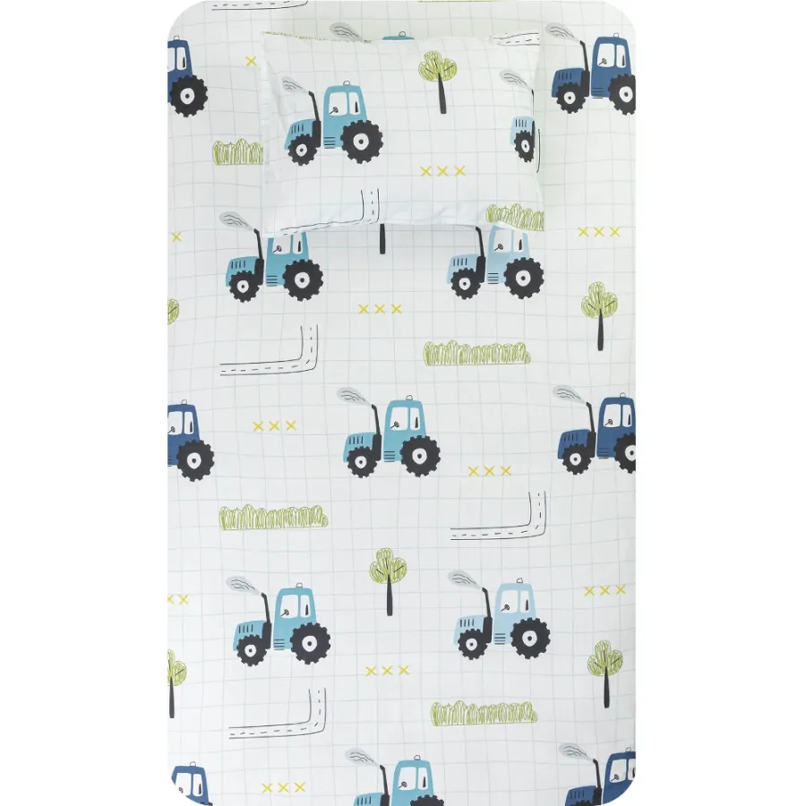 Σεντόνι Μονό Παιδικό (160x240) με Μαξιλαροθήκη Βαμβακερό Borea Trucky