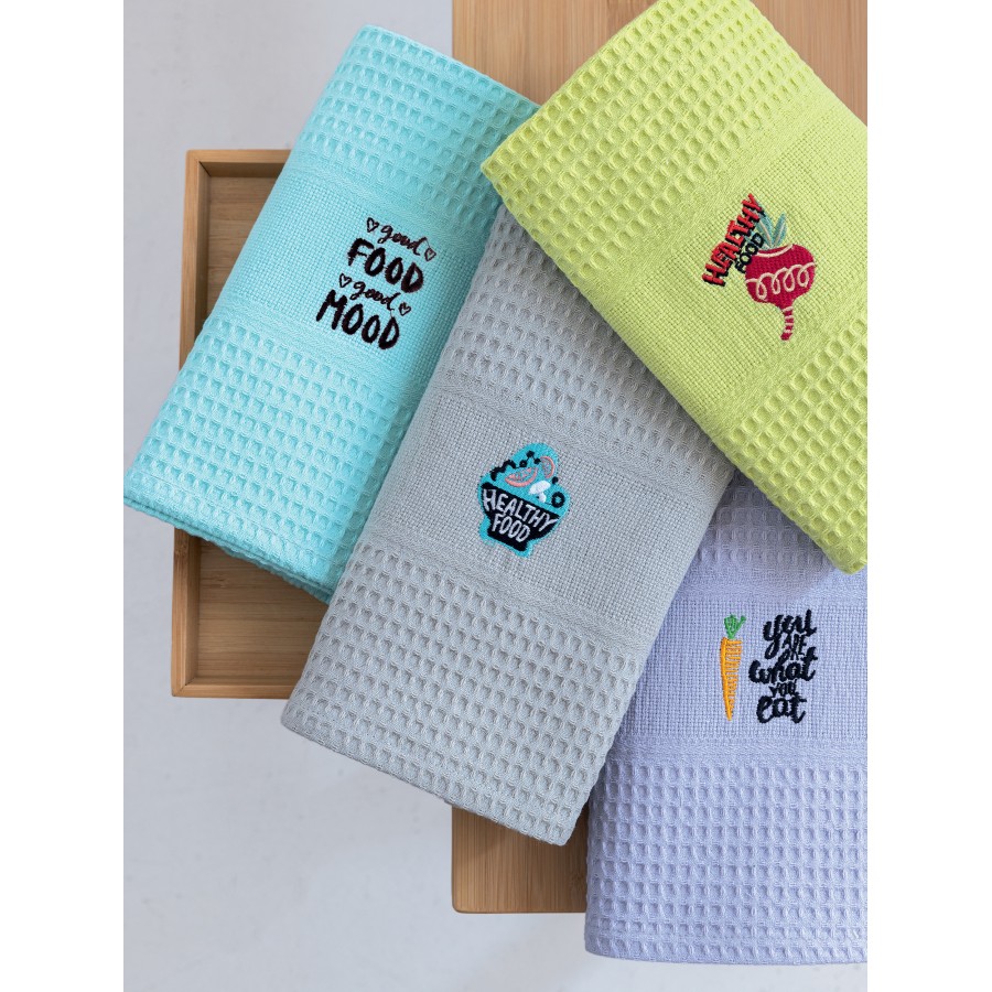 Σετ με 4 ποτηρόπανα κουζίνας, σε 4 διαφορετικά χρώματα: άκουα, γκρι, lime, λιλά.