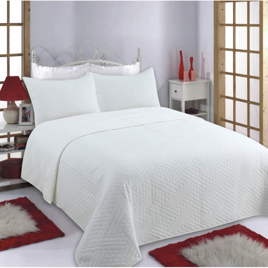 Σετ κουβερλί μονόχρωμο, διπλής όψης, με ανάγλυφο σχέδιο.