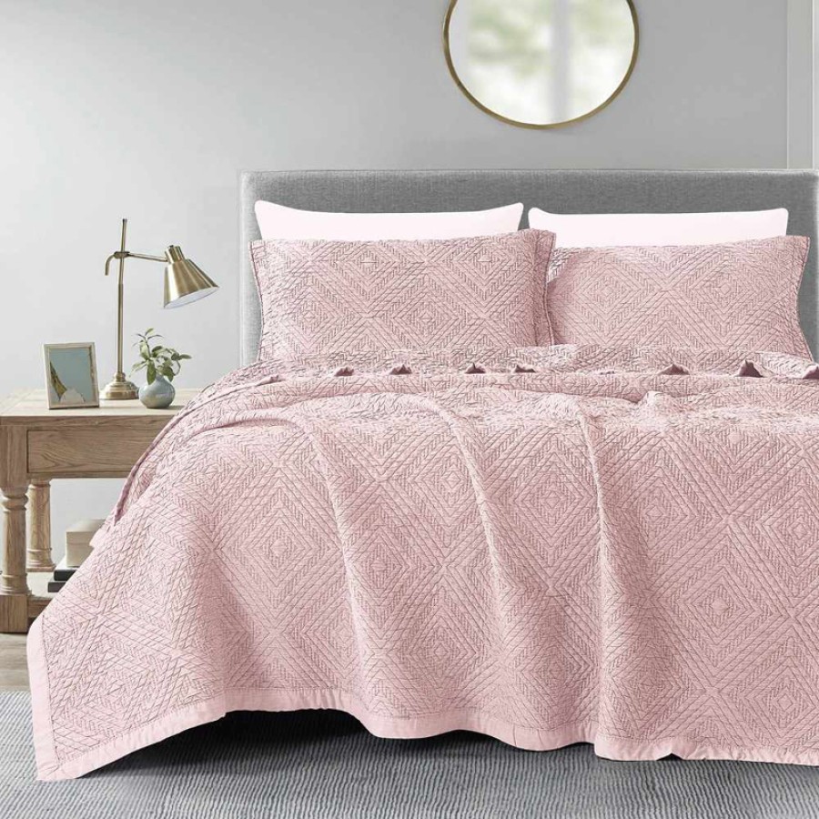 Σετ Κουβέρτα Ζακάρ Πολυτελείας Υπέρδιπλη (230x245) Με Μαξιλαροθήκες Borea Carrara Ροζέ