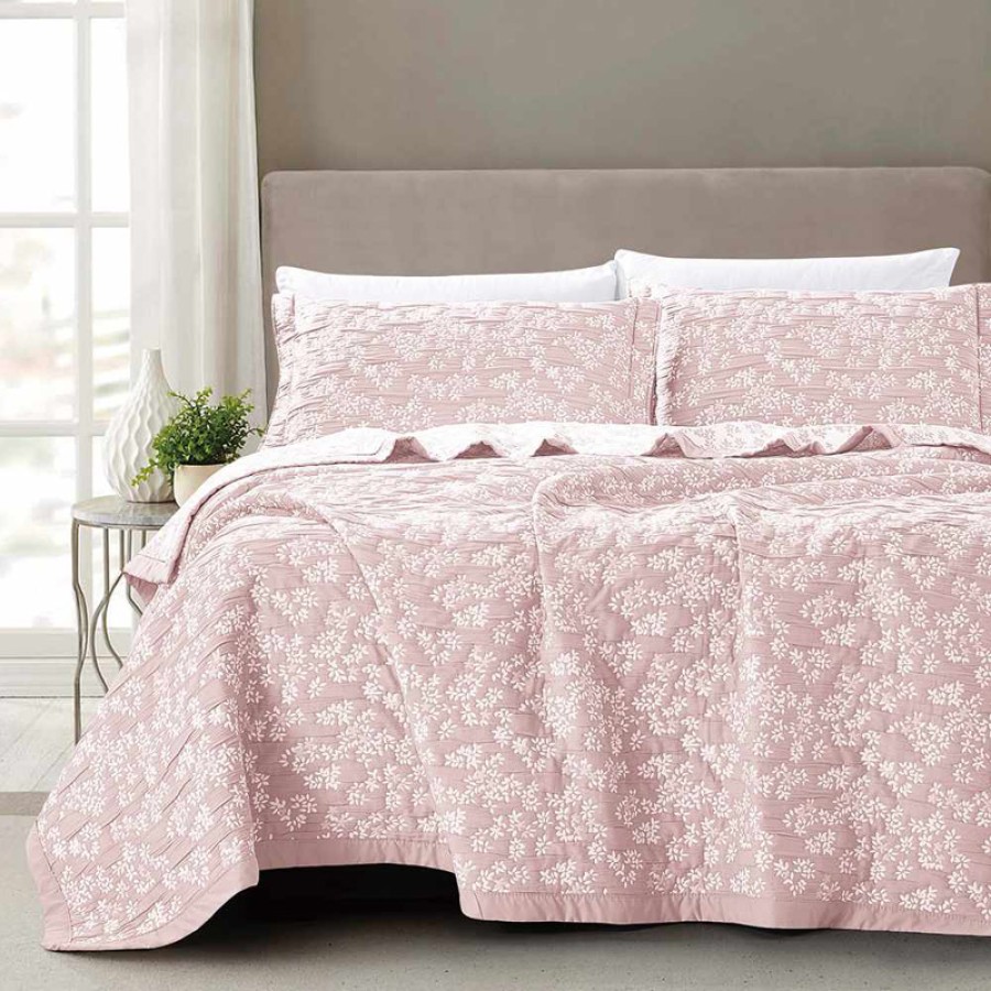 Σετ Κουβέρτα Ζακάρ Πολυτελείας Υπέρδιπλη (230x245) Με Μαξιλαροθήκες Borea Cherry Ροζέ