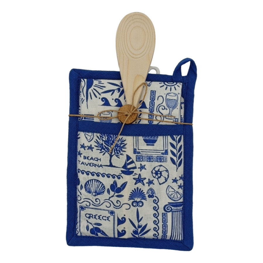 Σετ Κουζίνας 3τεμ (Πιάστρα | Ποτηρόπανο | Ξύλινη Κουτάλα) Newhome 88221 Ελλάδα Μπλε
