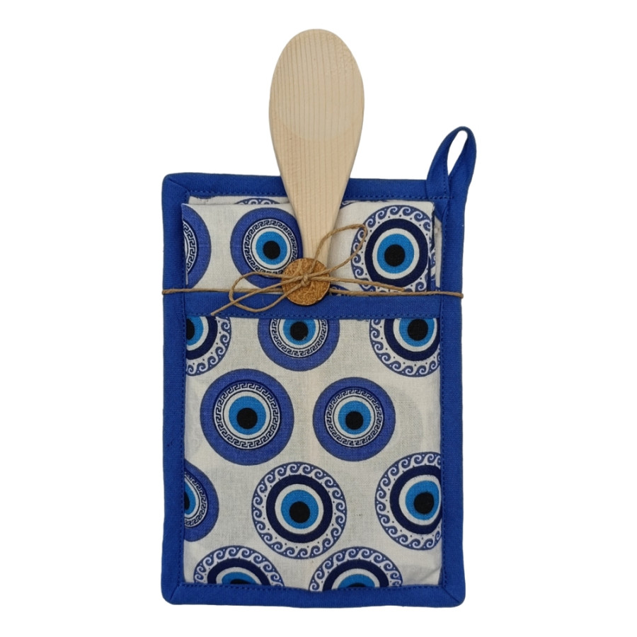 Σετ Κουζίνας 3τεμ (Πιάστρα | Ποτηρόπανο | Ξύλινη Κουτάλα) Newhome 88257 Μάτι με Κύματα