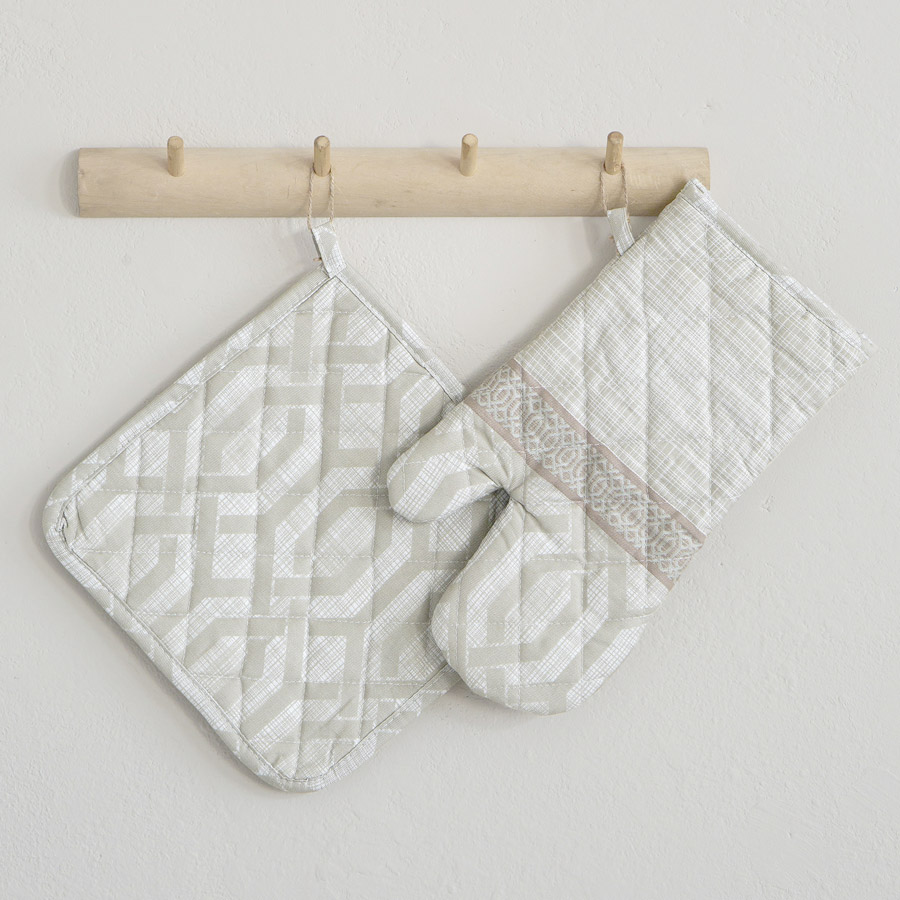 Σετ κουζίνας (Γάντι + Πιάστρα) βαμβακερό με γεωμετρικό σχέδιο.