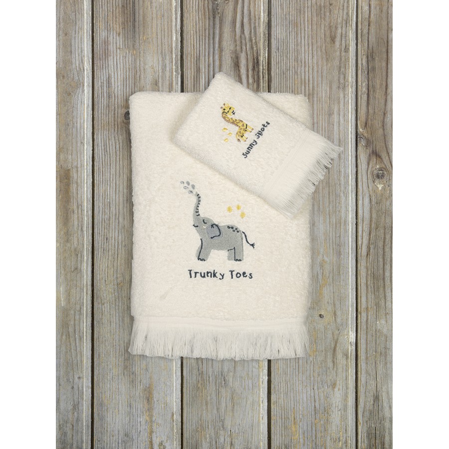 Σετ παιδικές πετσέτες με κεντημένα ζωάκια και κρόσσι στο τελείωμα , απαλό και απορροφητικό, για το μπάνιο του μικρού σας θησαυρού.