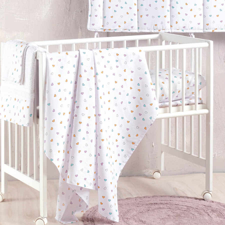 Σετ Παπλωματοθήκη (110x160) με μαξιλαροθήκη Μπεμπέ Rythmos Tiny Heart Λευκό