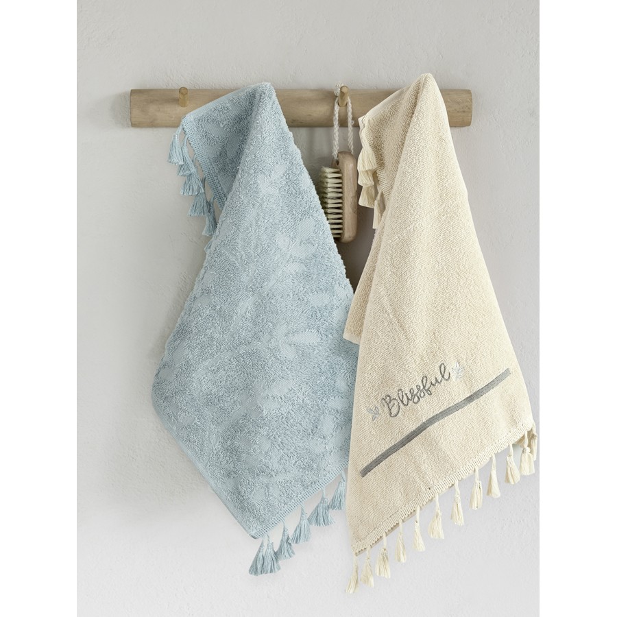 Σετ Πετσέτες 2 τεμαχίων Χεριών (30x50) Βαμβακερές με Κέντημα και Κρόσσι Nima Blissful