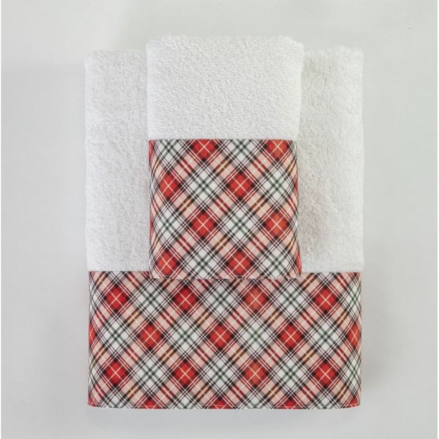 Χριστουγεννιάτικες σετ πετσέτες 2 τεμαχίων, σε λευκό χρώμα, με καρώ φάσα. Ιδανικές για καθημερινή χρήση κατά τη διάρκεια των γιορτών. Διακοσμήστε το μπάνιο σας με χριστουγεννιάτικη διάθεση.