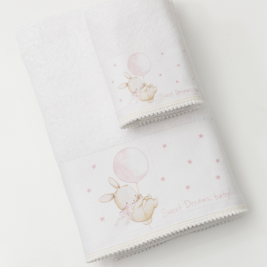 Σετ Πετσέτες 2 τεμαχίων Παιδικές (Χειρός | Λουτρού) Borea Sweet Dreams Baby Λευκό-Ροζ