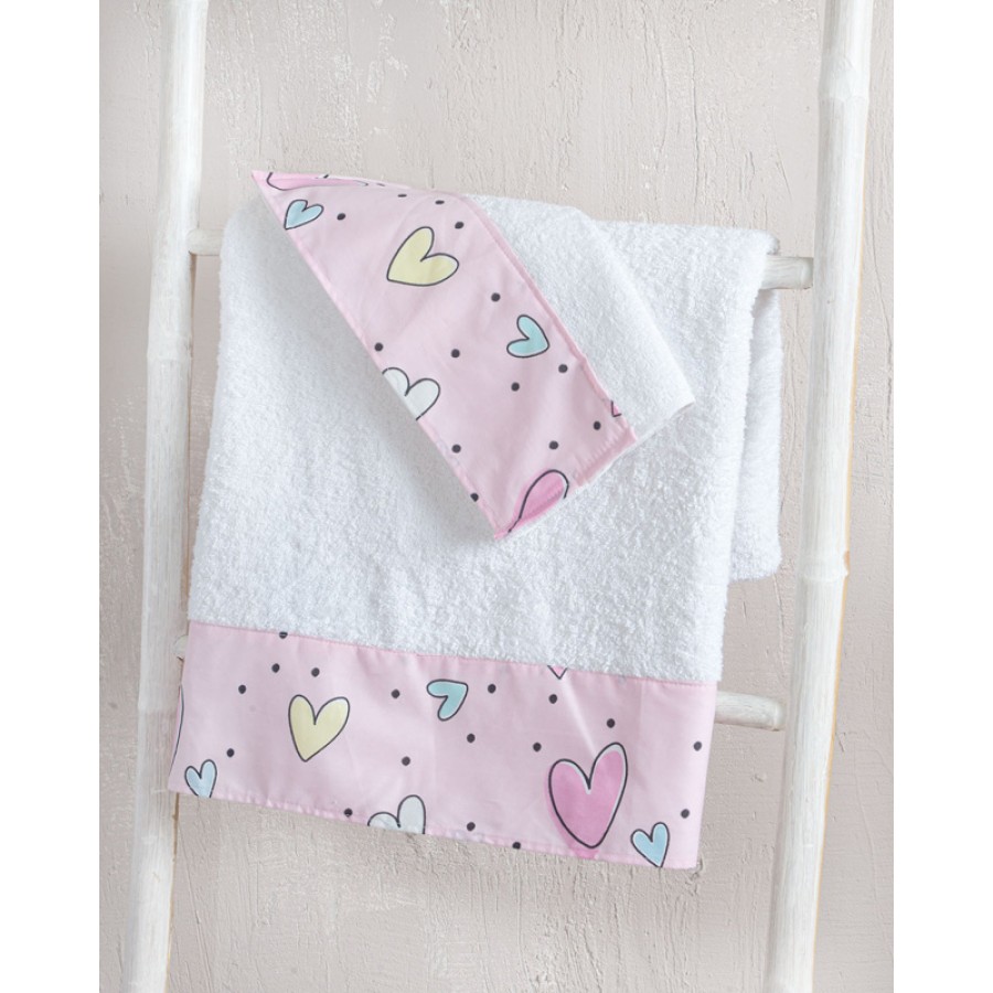 Σετ Πετσέτες 2 τεμαχίων Παιδικές με φάσα (Χειρός | Λουτρού) Rythmos Pop Hearts ροζ