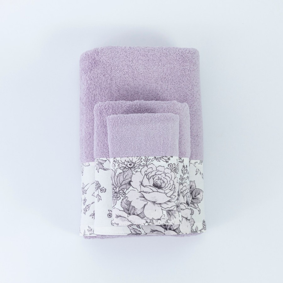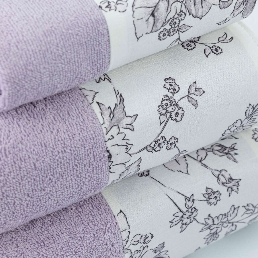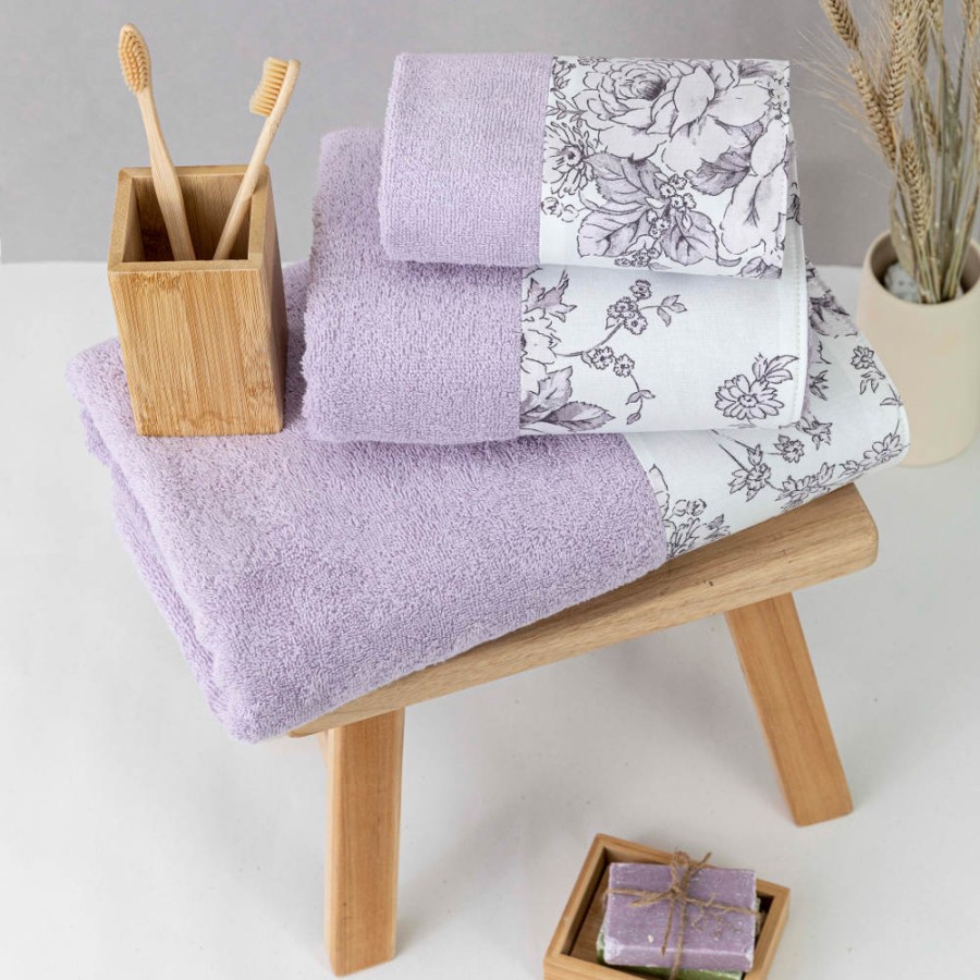 Σετ Πετσέτες 3 τεμ (Χειρός|Προσώπου|Λουτρού) Με Υφασμάτινη Φάσα Borea Beatrice Λιλά