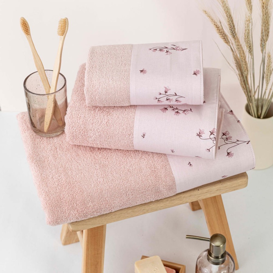 Σετ Πετσέτες 3 τεμ (Χειρός|Προσώπου|Λουτρού) Με Υφασμάτινη Φάσα Borea Campanula Πούδρα