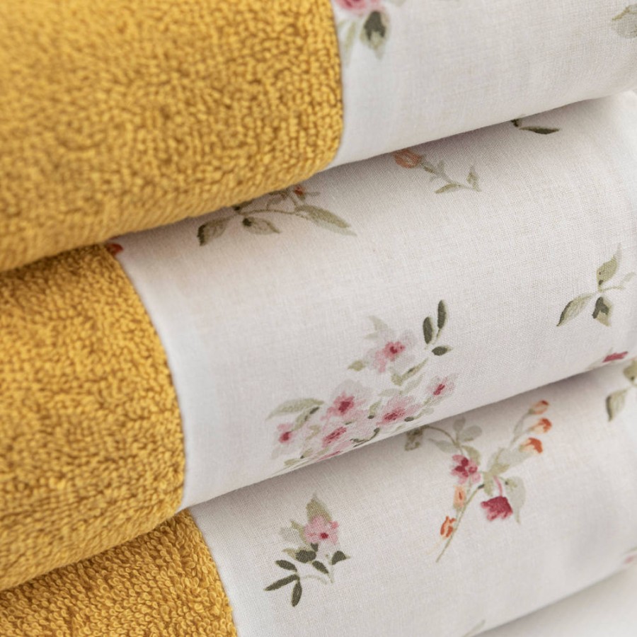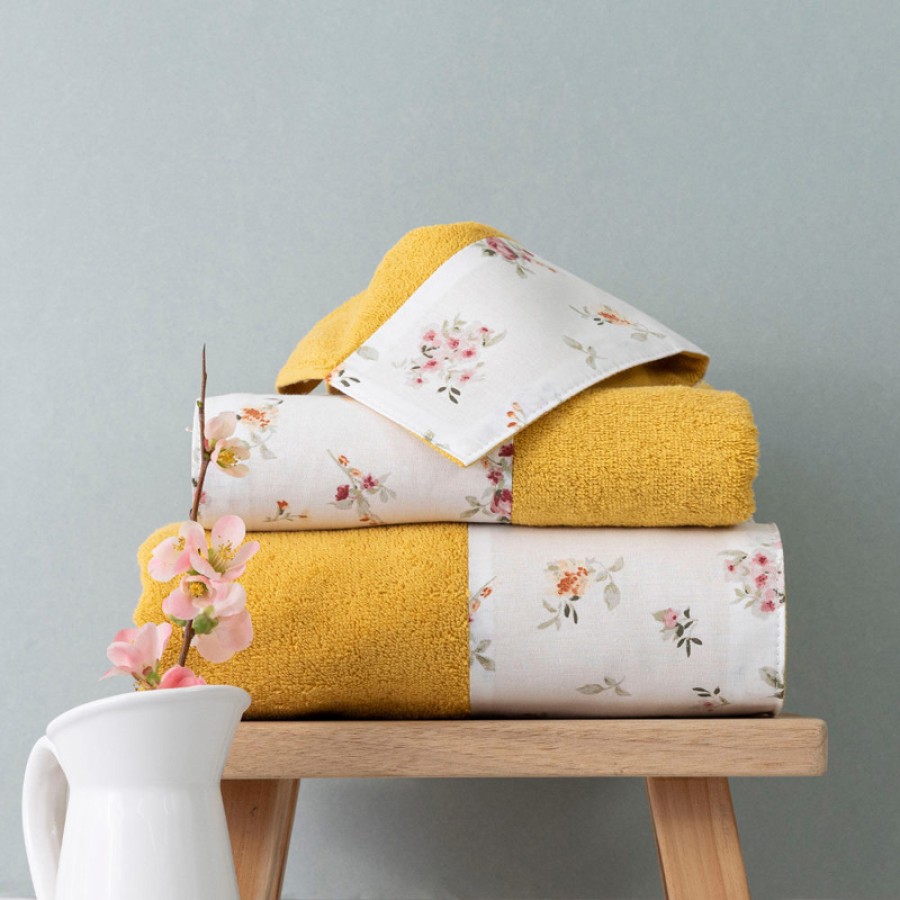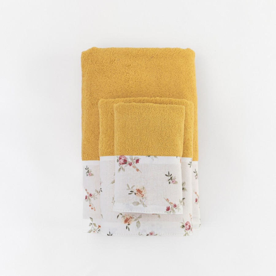 Σετ Πετσέτες 3 τεμ (Χειρός|Προσώπου|Λουτρού) Με Υφασμάτινη Φάσα Borea Elodie Μουσταρδί