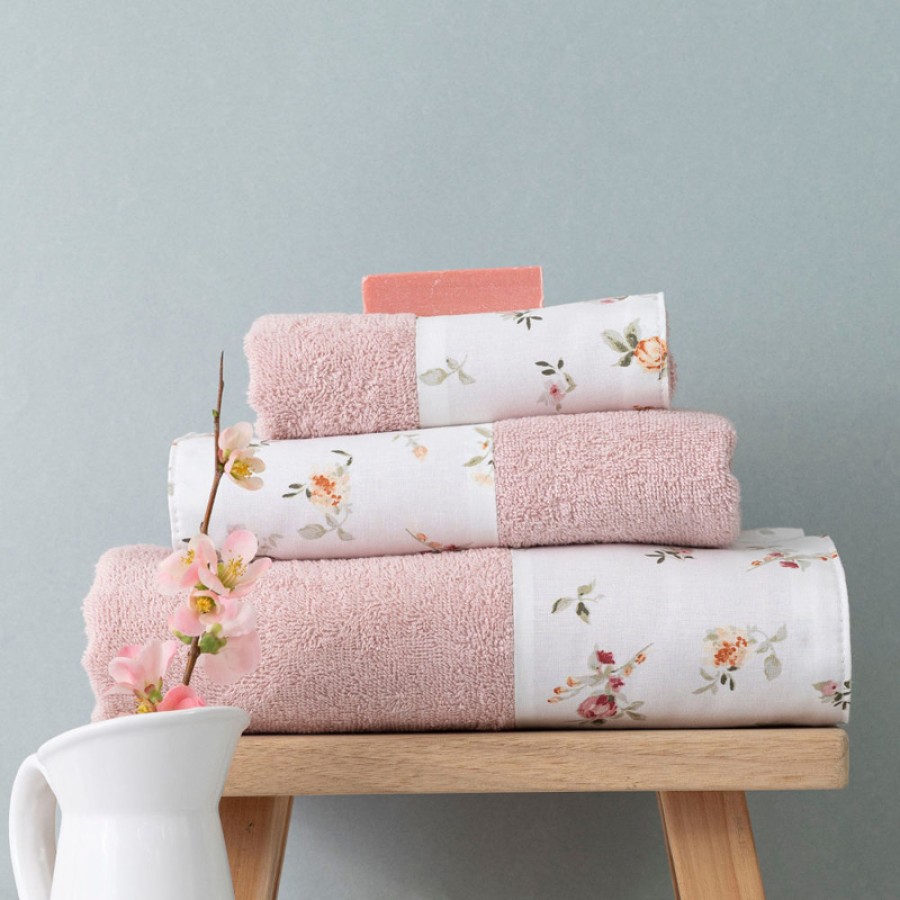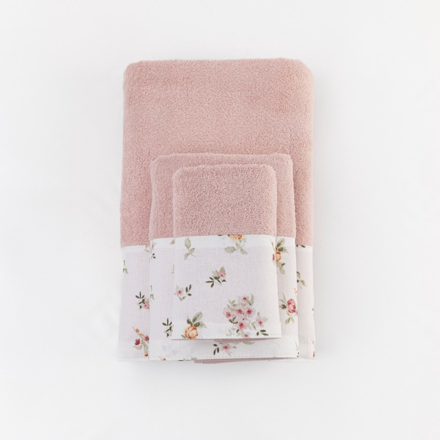 Σετ Πετσέτες 3 τεμ (Χειρός|Προσώπου|Λουτρού) Με Υφασμάτινη Φάσα Borea Elodie Πούδρα