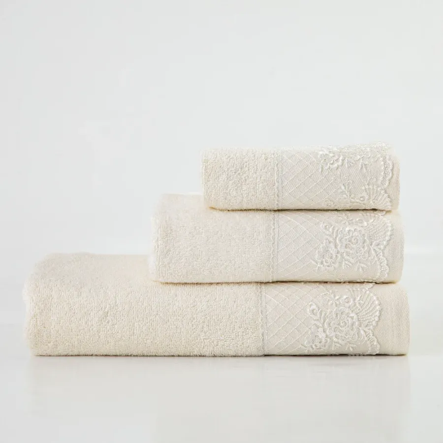 Σετ Πετσέτες 3 τεμ (Χειρός|Προσώπου|Λουτρού) Βαμβακερές Με Δαντέλα Borea Ηλέκτρα Εκρού