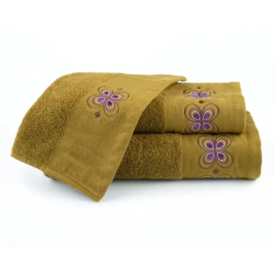 Σετ Πετσέτες 3 τεμ (Χειρός|Προσώπου|Λουτρού) Βαμβακερές Με Κέντημα Στη Φασα Borea Petalouda Λαδί