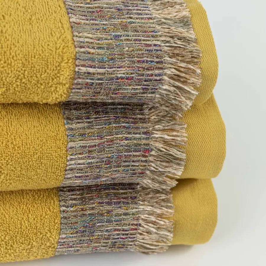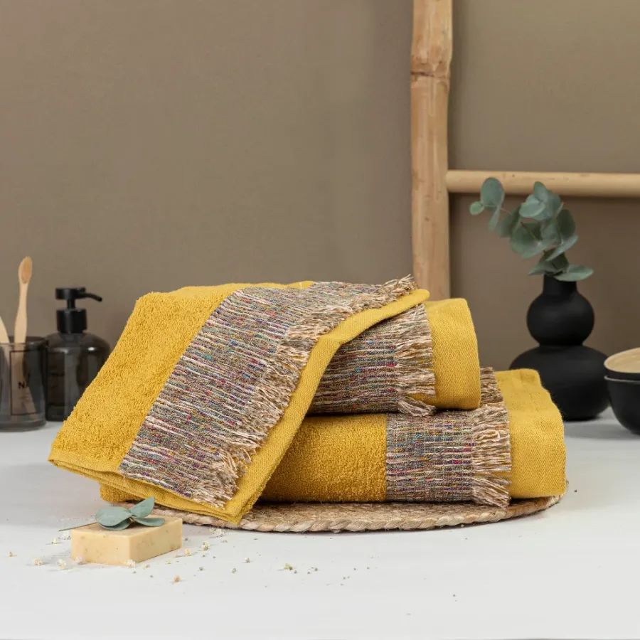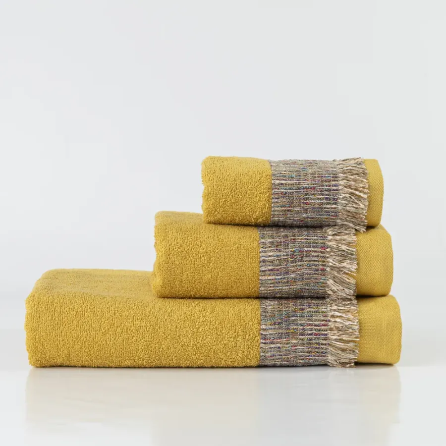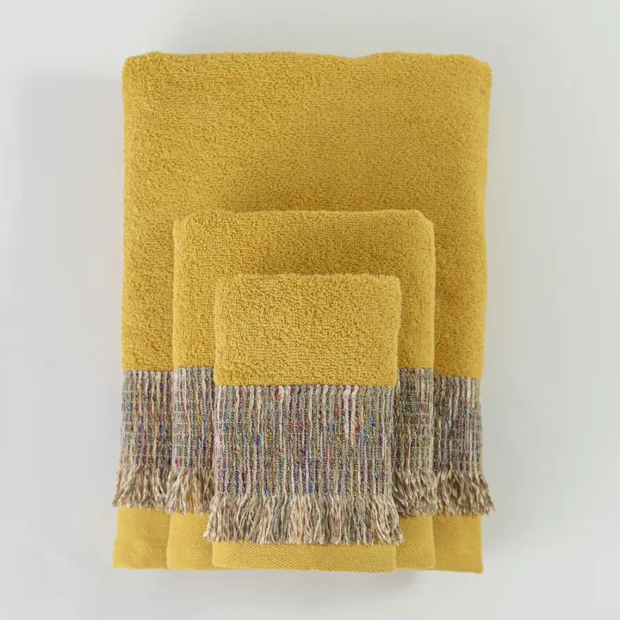 Σετ Πετσέτες 3 τεμ (Χειρός|Προσώπου|Λουτρού) Βαμβακερές Με Σενίλ Δαντέλα Borea Siesta Μουσταρδί