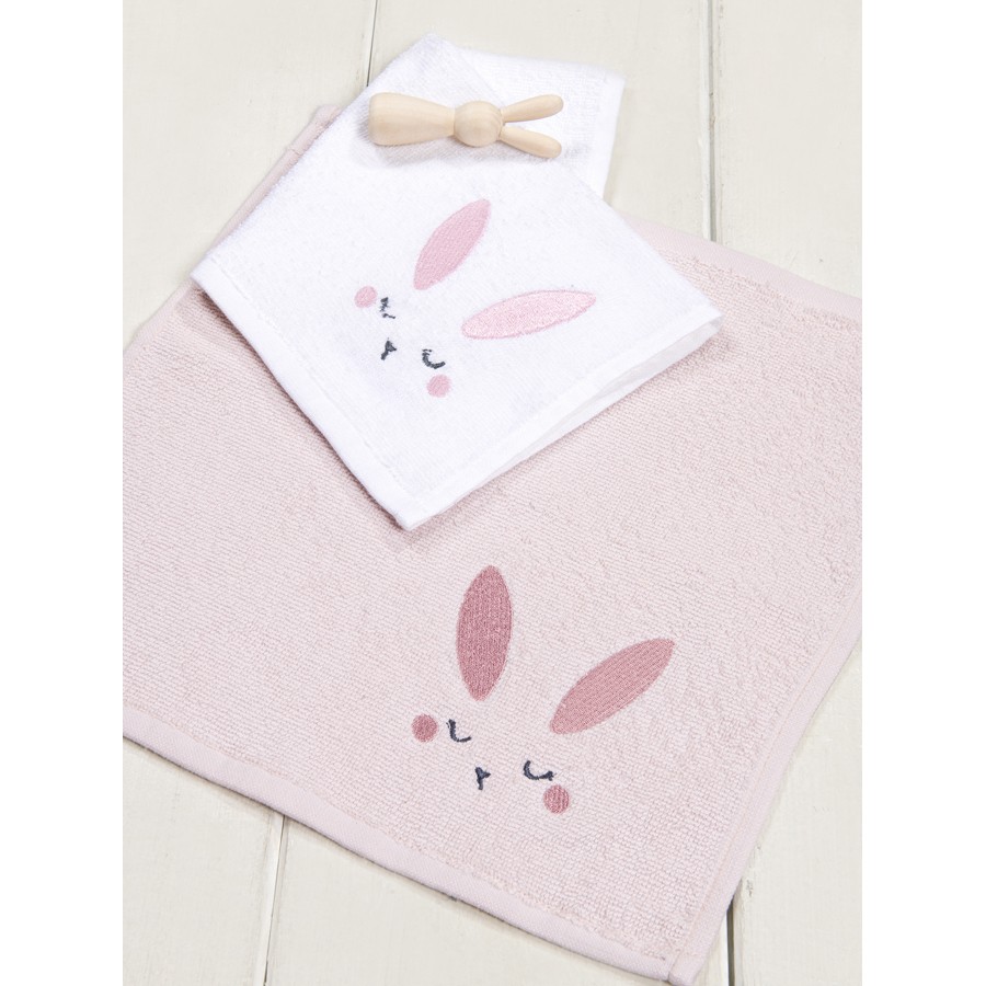 Σετ Πετσέτες-Λαβέτες 2 τεμαχίων Βρεφικές με κεντητό σχέδιο προσωπάκι λαγουδίνας με τα μεγάλα αυτιά.