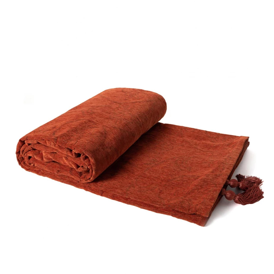 Chenille ριχτάρια εξαιρετικής ποιότητας και αντοχής, με ανάγλυφο διαχρονικό damask μοτίβο, σε ζεστή πορτοκαλί απόχρωση.