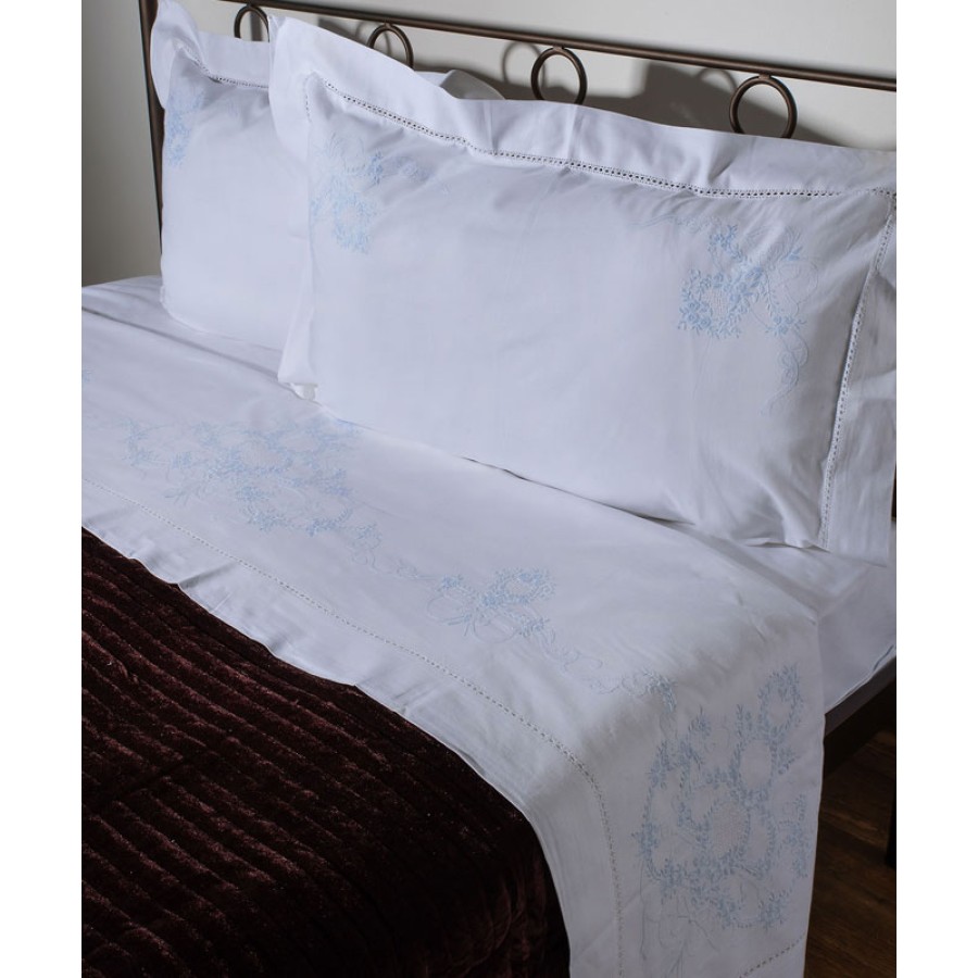 Σετ Σεντόνια 4 τεμαχίων Χειροποίητα Υπέρδιπλα(225x270) Με Ανεβατό Κέντημα Newhome 2827 λευκό/γαλάζιο