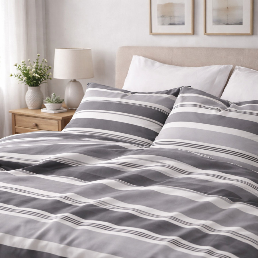 Σετ σεντόνια από σύμμεικτο βαμβάκι, σε ριγέ σχέδιο. Το μοντέρνο μοτίβο θα δώσει στυλ στο υπνοδωμάτιό σας. Συνδυάστε με ίδιου σχεδίου παπλωματοθήκη για ένα ολοκληρωμένο αποτέλεσμα που θα σας ενθουσιάσει και θα δώσει άλλη πνοή στην κρεβατοκάμαρά σας.