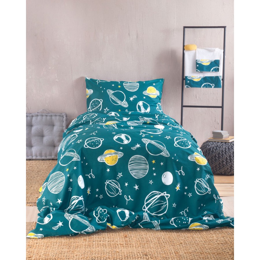 Σετ Σεντόνια Μονά (160x260) Βαμβακερά Rythmos Symbol Saturn πετρόλ