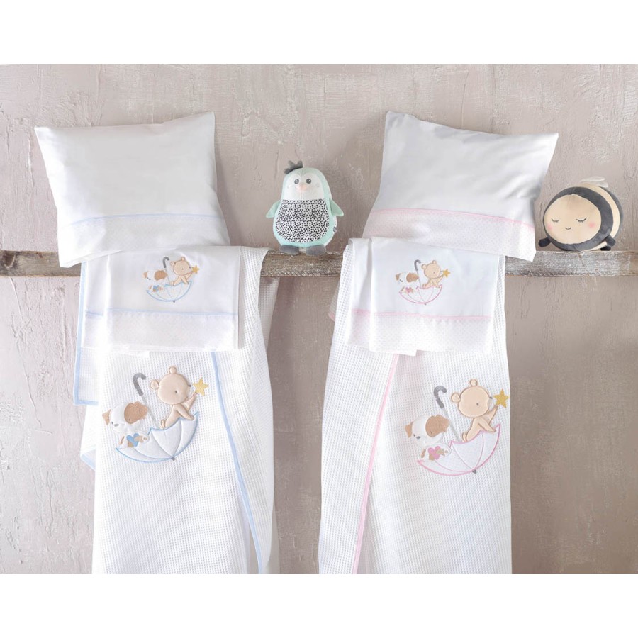 Σετ Σεντόνια Μπεμπέ Κούνιας (100x160) Με Κέντημα Βαμβακερά Rythmos Umbrella Flight Σιέλ