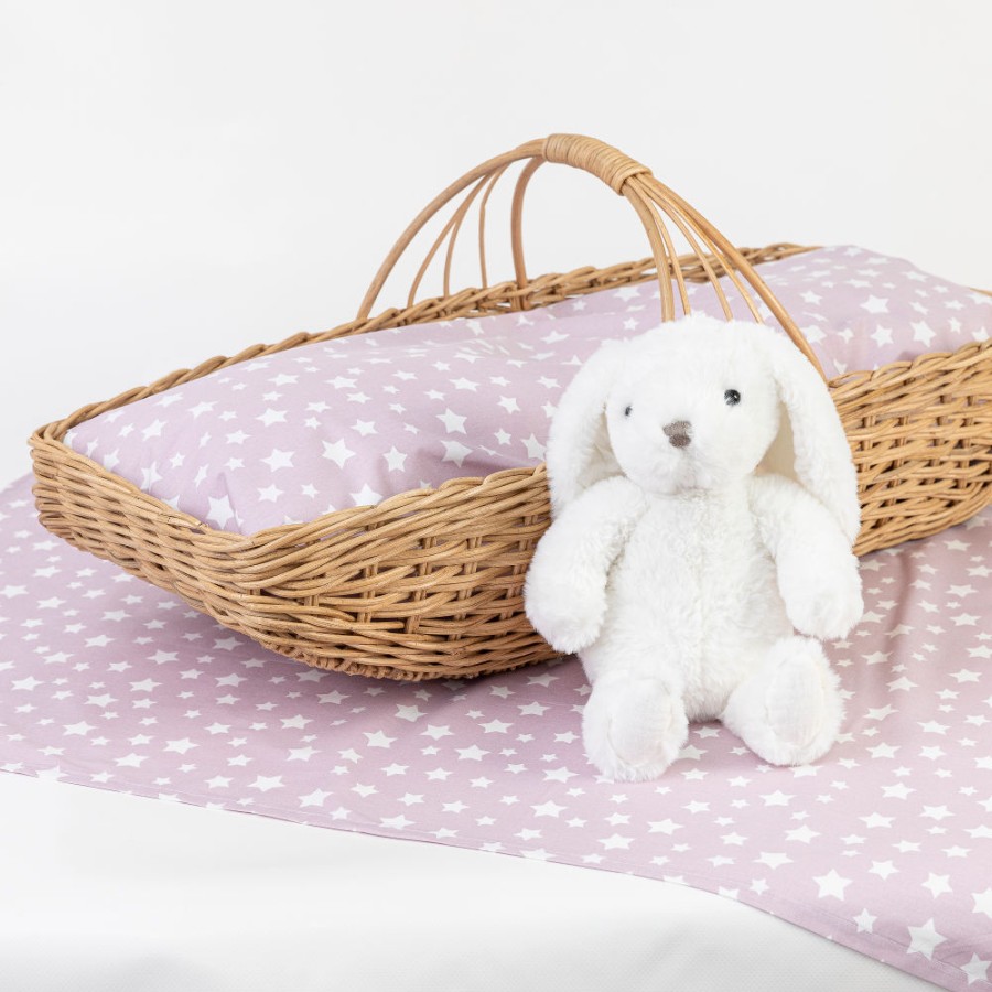 Το σετ περιλαμβάνει 2 σεντονάκια λίκνου ιδίου χρώματος , εμπριμέ με σχέδιο αστεράκια.
