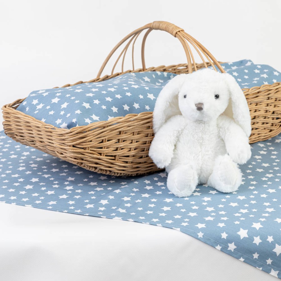 Το σετ περιλαμβάνει 2 σεντονάκια λίκνου ιδίου χρώματος , εμπριμέ με σχέδιο αστεράκια.