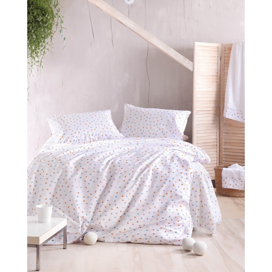 Σετ σεντόνια Υπέρδιπλα (230x270) με λάστιχο, Βαμβακερά Rythmos Symbol Tiny Heart Λευκό