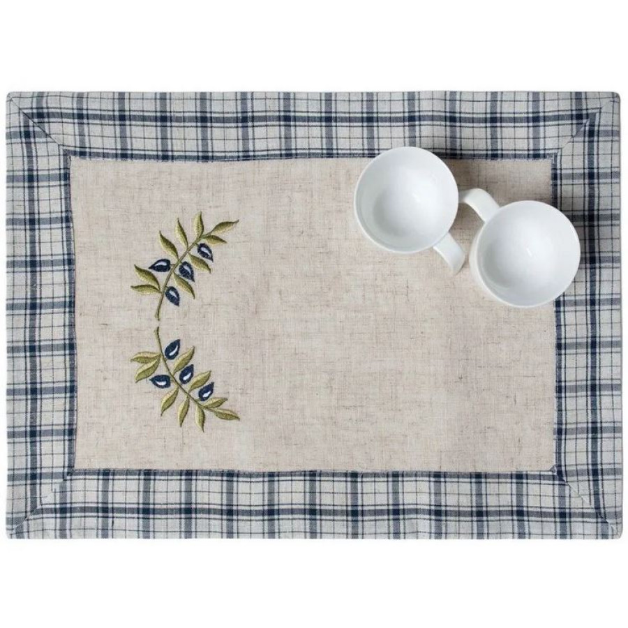 Σουπλά (35x50) Μπεζ με Κέντημα Ελιές και Καρώ Φάσα Newhome 1312 Μπλε