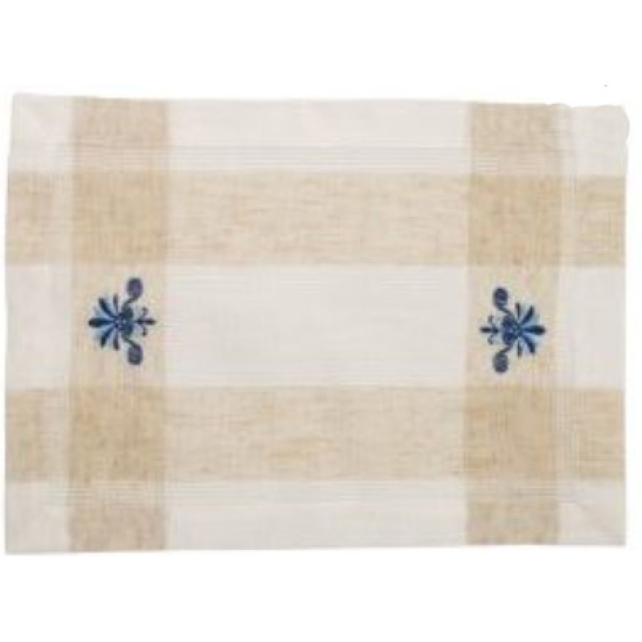 Σουπλά με εμφάνιση λινού και μπεζ φάσα με κλασσικό, παραδοσιακό κέντημα με μαιάνδρους, σε μπλε χρώμα.